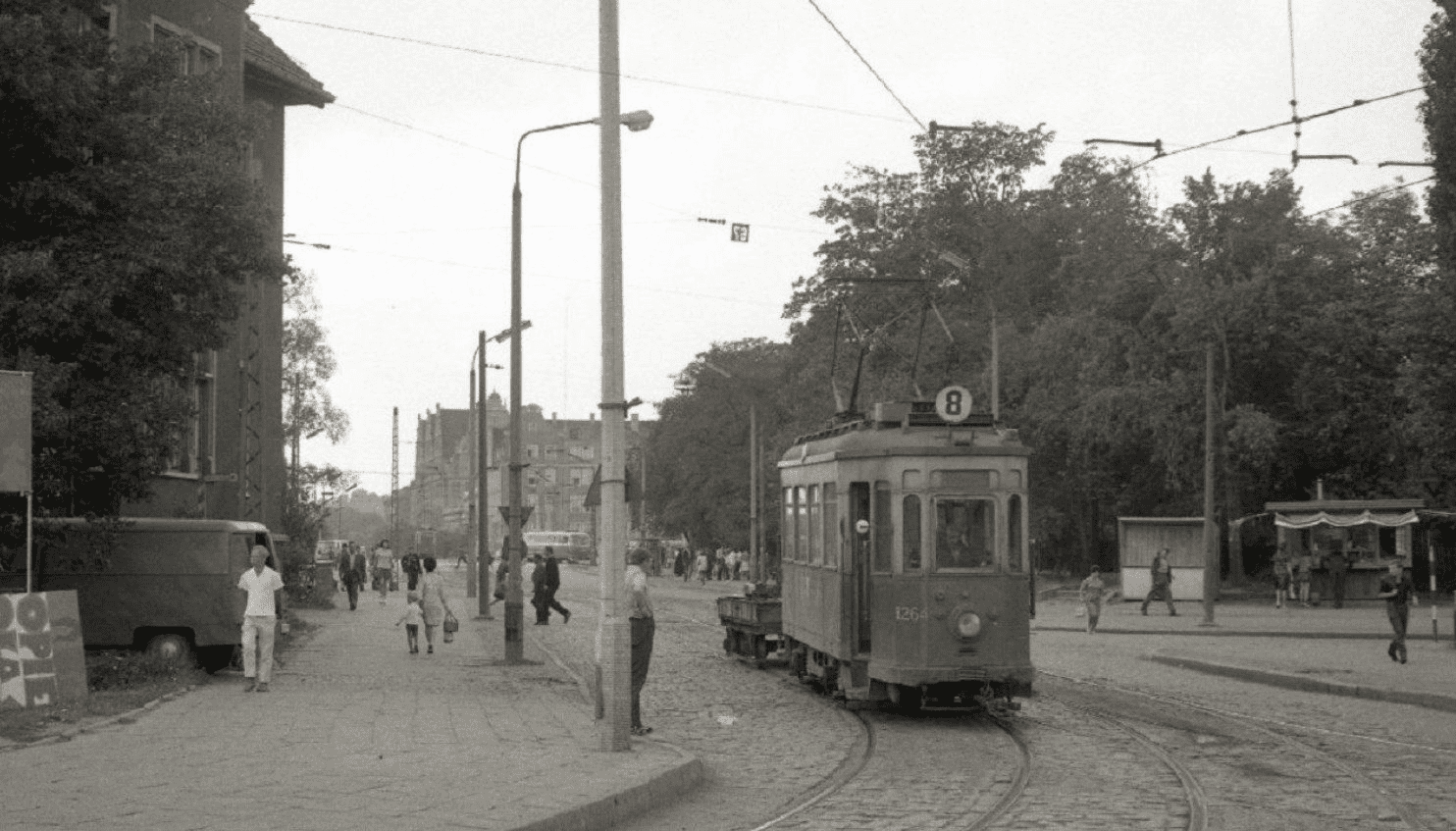 Jednym z najpilniejszych zadań stojących przed mieszkańcami polskich miast było przywrócenie komunikacji miejskiej. Szczególnie znacznych wysiłków wymagało przywrócenie połączenia tramwajowego, którego infrastruktura była w opłakanym stanie. Większość torów była poważnie uszkodzona lub pokryta gruzem zalegającym na ulicach. Sieć trakcyjna praktycznie przestała istnieć i trzeba ją było praktycznie odnowić. Część taboru kolejowego została wykorzystana przez wojsko niemieckie do budowy ulicznych barykad. W rezultacie czego transport został całkowicie zniszczony. Jedna z takich barykad została wzniesiona na wąskim odcinku ul. Kartuskiej, tuż przy pasażu handlowym przy ul. Starodworskiej. Co gorsza, każdy z około 30% ocalałych tramwajów wymagał mniej lub bardziej odbudowy. Tego wszystkiego nie dało się od razu wykorzystać, ale później specjaliści szybko przystąpili do efektywnej i wydajnej pracy.