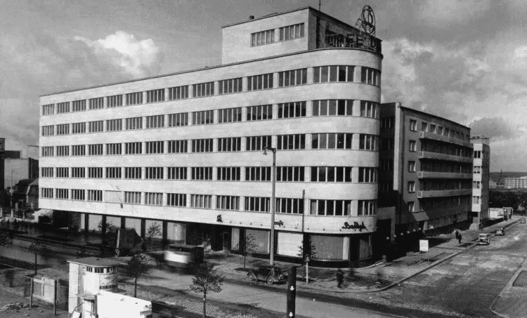 Офисное здание у старшего поколения жителей Гдыни ассоциируется с послевоенной штаб-квартирой Польских океанских линий. Но дом по замыслу городских проектировщиков был возведен для нужд института социального страхования, где до начала военных действий Второй мировой войны и размещался. В здании также находилась популярная кофейня «Балтик». Дом выделяется от соседних округлой частью фасада. Характерными особенностями также является сочетание частей разной высоты, что характерно для модернистского стиля. Чтобы сохранить общую концепцию городских зданий, фасад был белого цвета, имел большие окна и простые без дополнительной декоративной отделки стены. Но в отличие от других городских зданий этот имел облицовку первого этажа черными гранитными плитами. Сейчас в здании находится центр поддержки предпринимательства и информационное подразделение мэрии Гдыни.