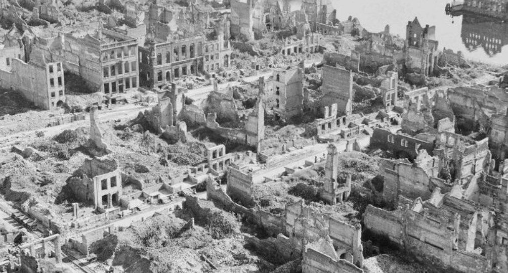 Центр Гданська був зруйнований на 95%. Місто разом із Варшавою та Вроцлавом, встановило трагічні рекорди воєнних збитків. І за цими цифрами стояла руйнація міста, побудованого руками найвидатніших майстрів нідерландського Відродження та бароко, міста, яке було одним із найкрасивіших історичних комплексів Північної Європи.